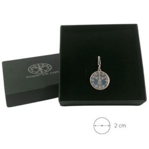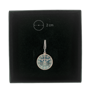 De BioZence hanger van 2 cm. doorsnede is uit zilver vervaardigd met een gouden inleg en een gouden achterzijde. Op speciaal verzoek kan deze ook in volledig goud worden vervaardigd.