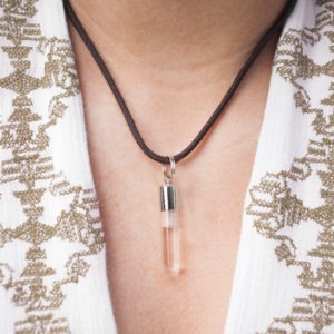 De montbalans hanger is kwartsglazen buisje, gevuld met een onder andere een residu van een unieke Hollandse kleisoort en wordt geleverd zonder ketting/koordje.
